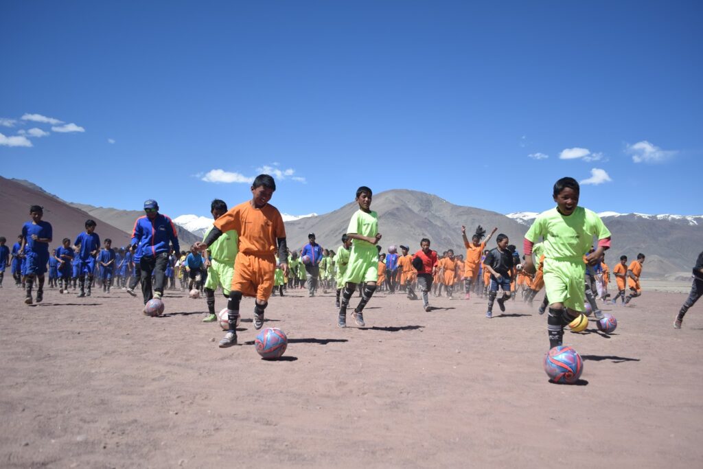 This was certainly going to be one of the biggest sporting events that the block had ever seen, and with a couple of hoardings around the Nyoma town, the excitement of ‘the game’ was making its way into the hearts of the village men & women. They all heard that there are more number of participating girls than boys- was that true? That the children are going to get a permanent play field in the town – was that true? That big companies are sending clothes & shoes for the village children – was that true? That a celebrity singer was coming to entertain all of them –could that be true as well? But by the way, what is this game of soccer, anyways?